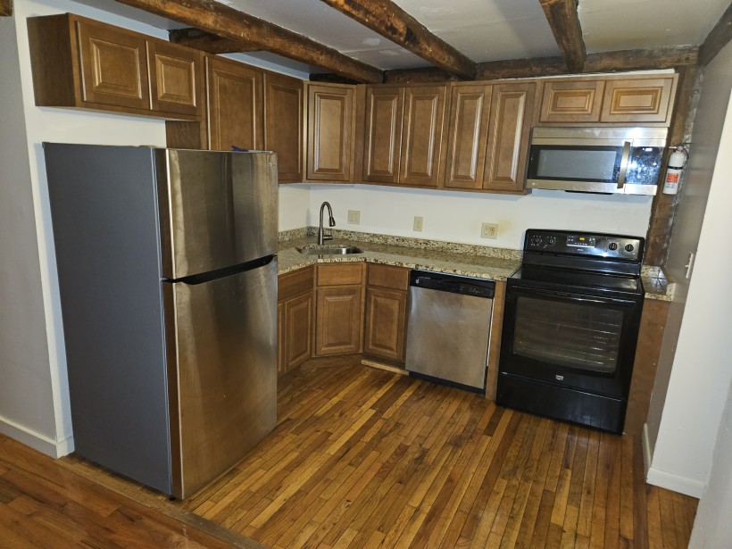 Oversized 4 bedroom apartment. High ceilings with exposed beams. Large kitchen with ample cabinet space full sized self cleaning oven, dishwasher and full sized fridge. Large living room and large bathroom.