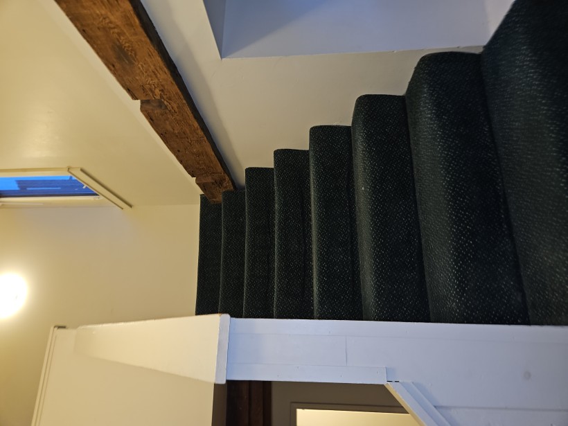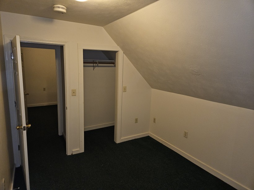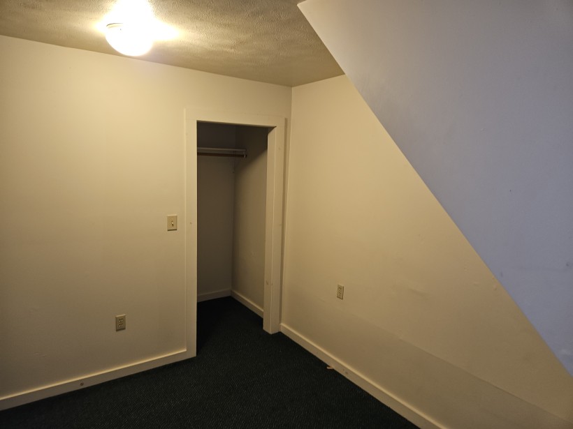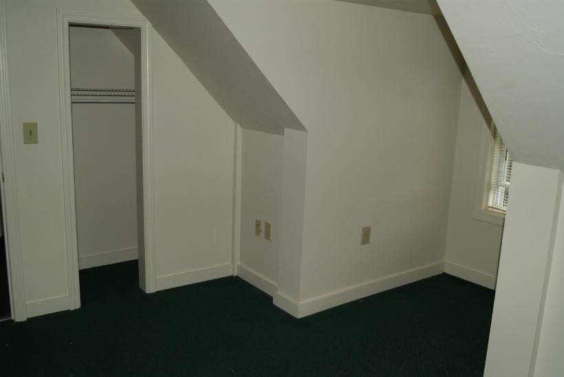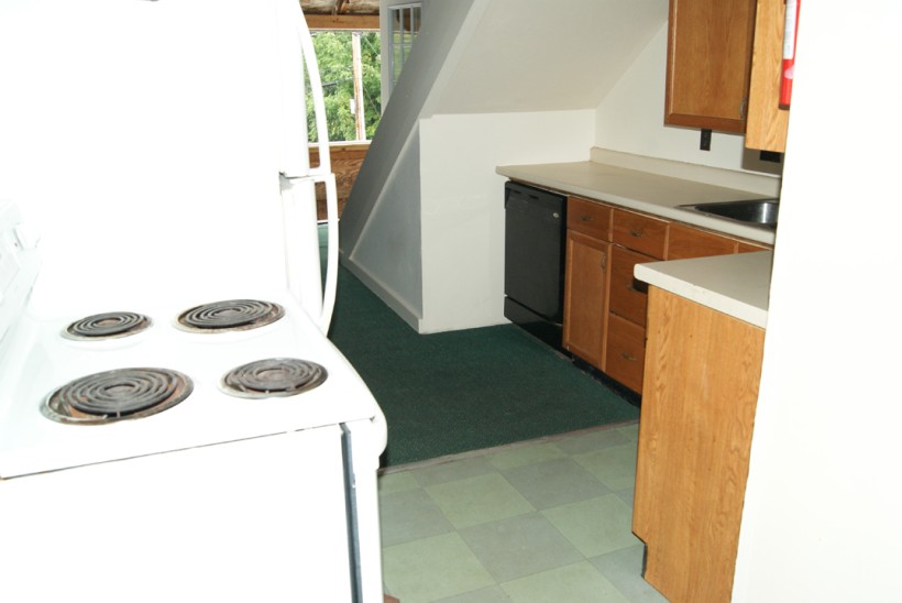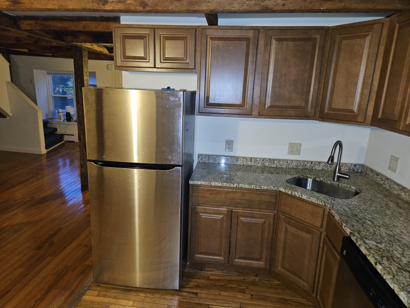 3 spacious bedrooms. Large living room. Kitchen has ample cabinet space, full sized self-cleaning oven, dishwasher and full sized fridge. High ceilings with exposed rough cut beams on the first floor. Large storage closet. 2 upper bedrooms have dormered windows perfect for study area.