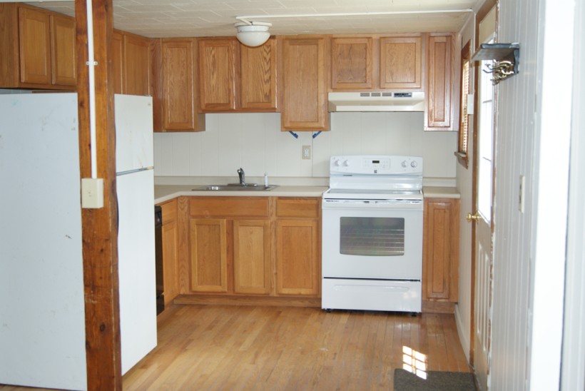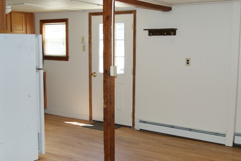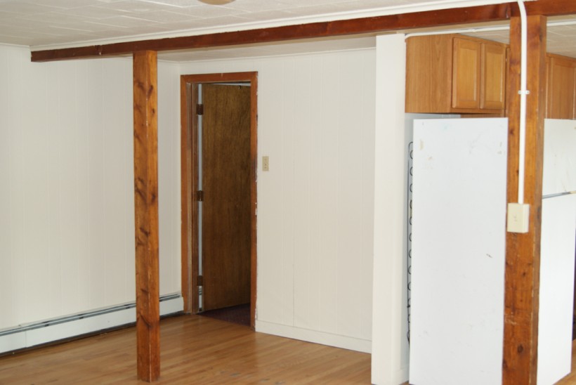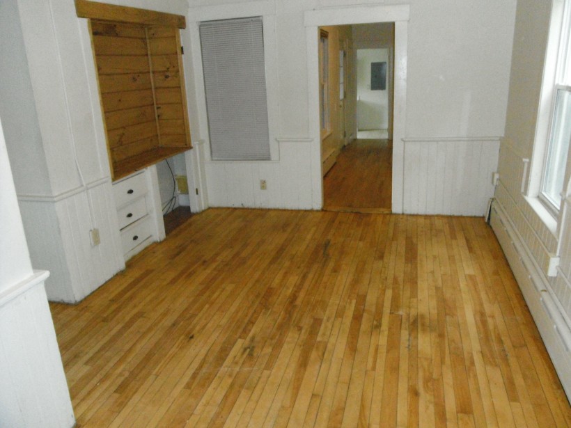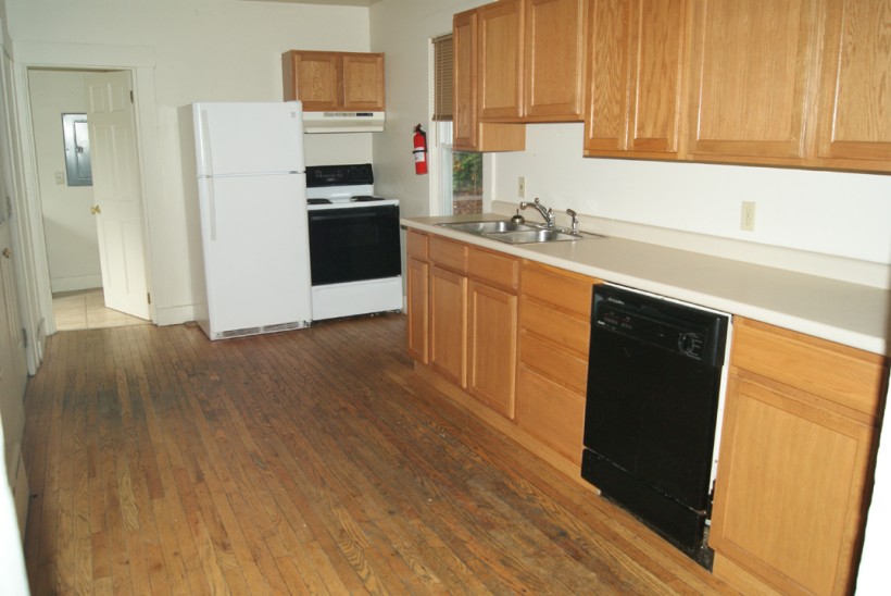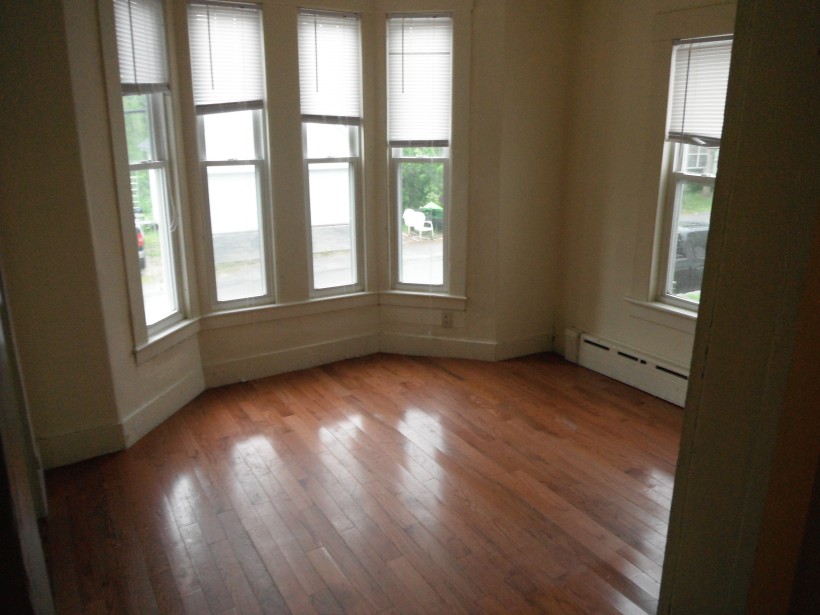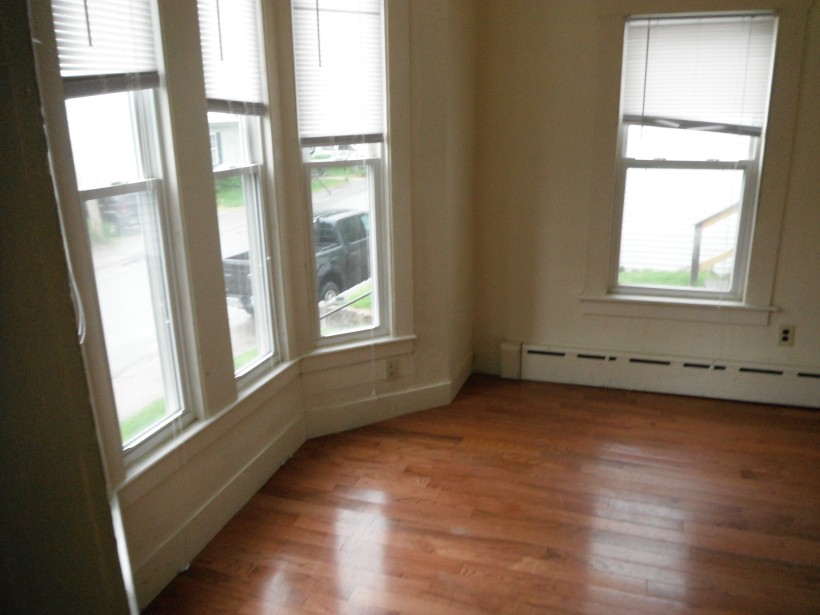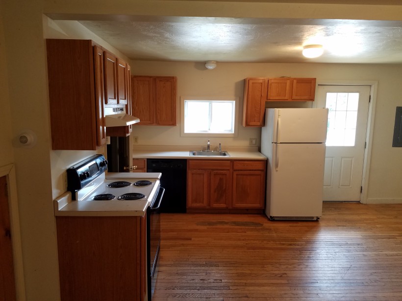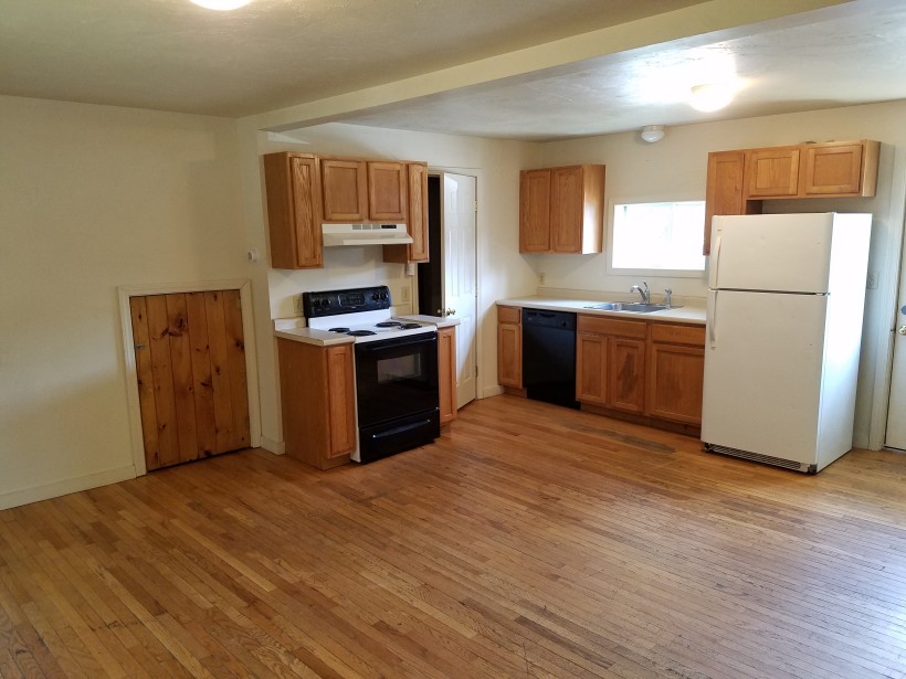 3 large bedrooms, large living room & kitchen area with hardwood floors, 1 bathroom, stove, fridge, dishwasher.