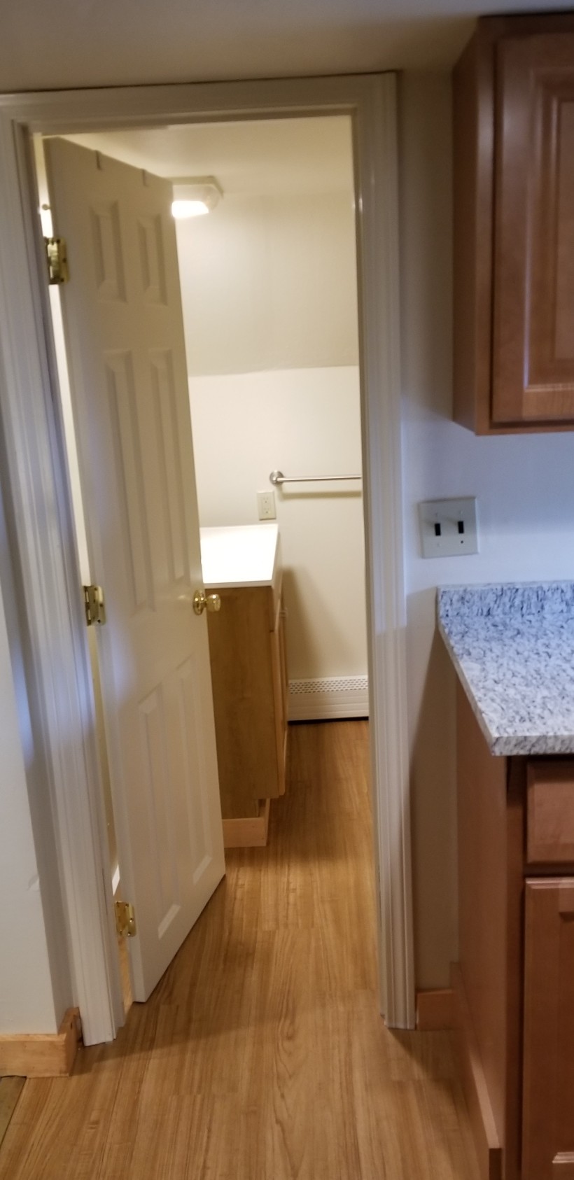 Second floor, 1 spacious bedroom with two closets, large living room, storage closets, 1 bathroom, updated kitchen, granite counter tops, stove, fridge, new flooring bathroom & living room.
